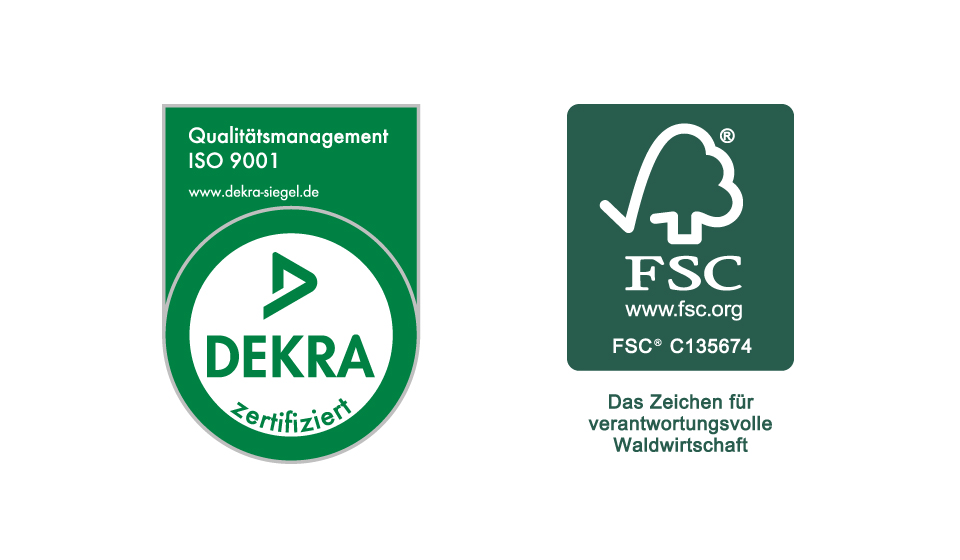 Rezertifizierung des Qualitätsmanagementsystems DIN EN ISO 9001:2008 mit gleichzeitiger Umstellung auf den neusten Standard DIN EN ISO 9001:2015. Erweiterung unserer Zertifizierungen durch die FSC®-Siegel, die internationale Standards in ökologischer Hinsicht setzen.